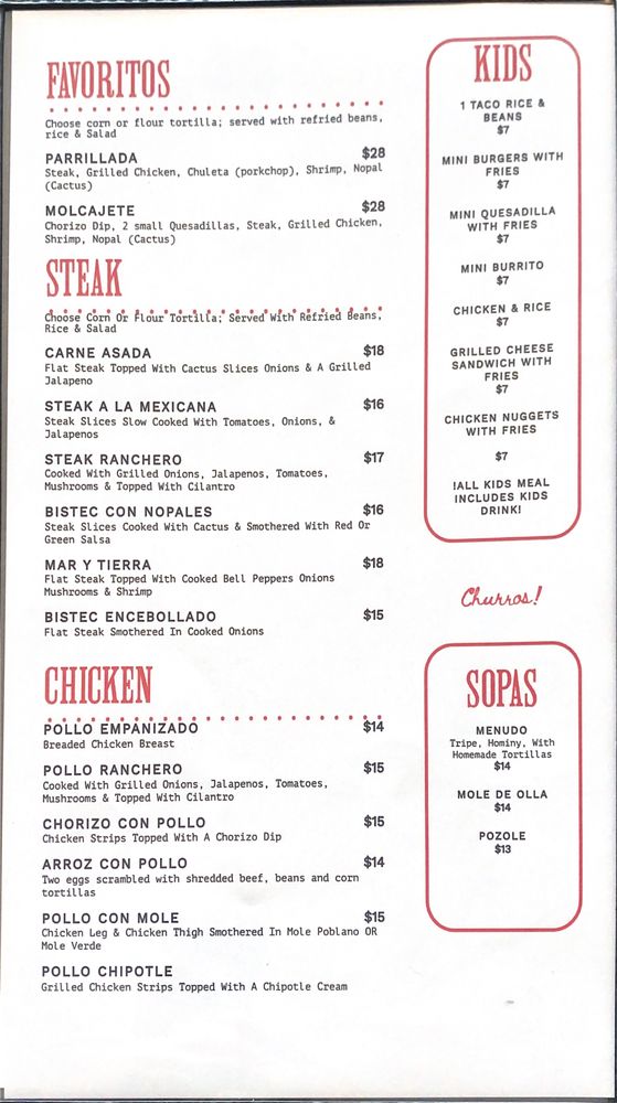 " Flour Tortilla prepared with mozzarella cheese, the meat of your choice served with rice and beans. Price start .